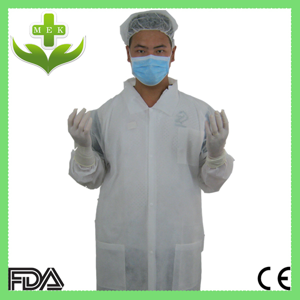 | HYKY-04411 | Lab coat Button Collar | PP | S/M/L/XL | white/blue/green | 10pcs/bag, 100pcs/carton | 6.5 | 7.5 | 42*26*31cm |