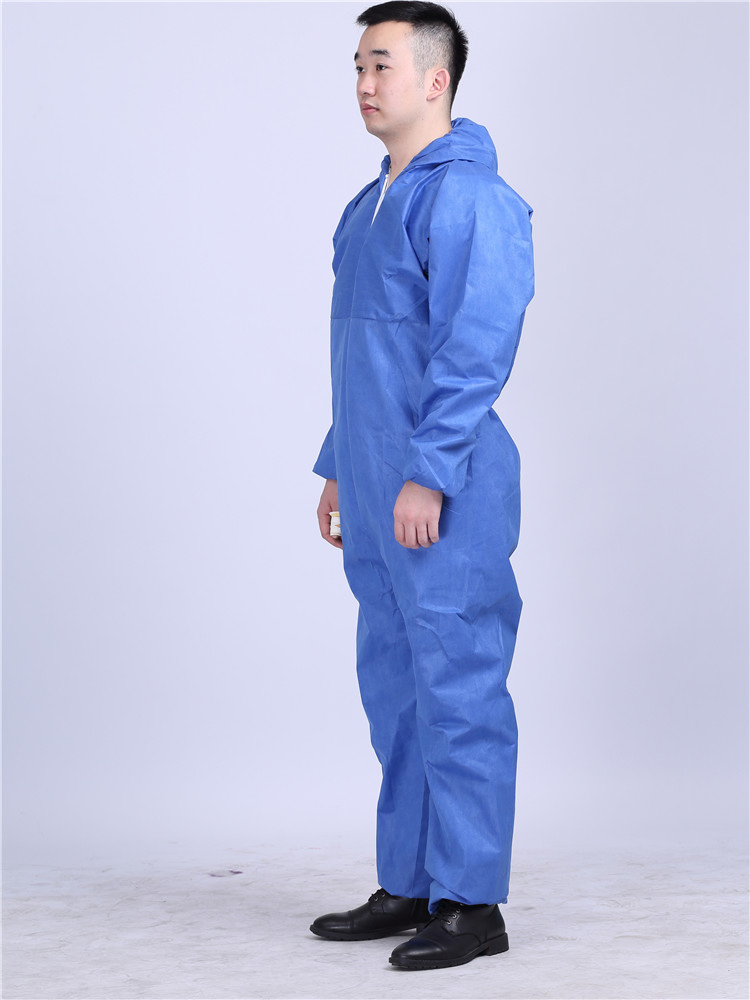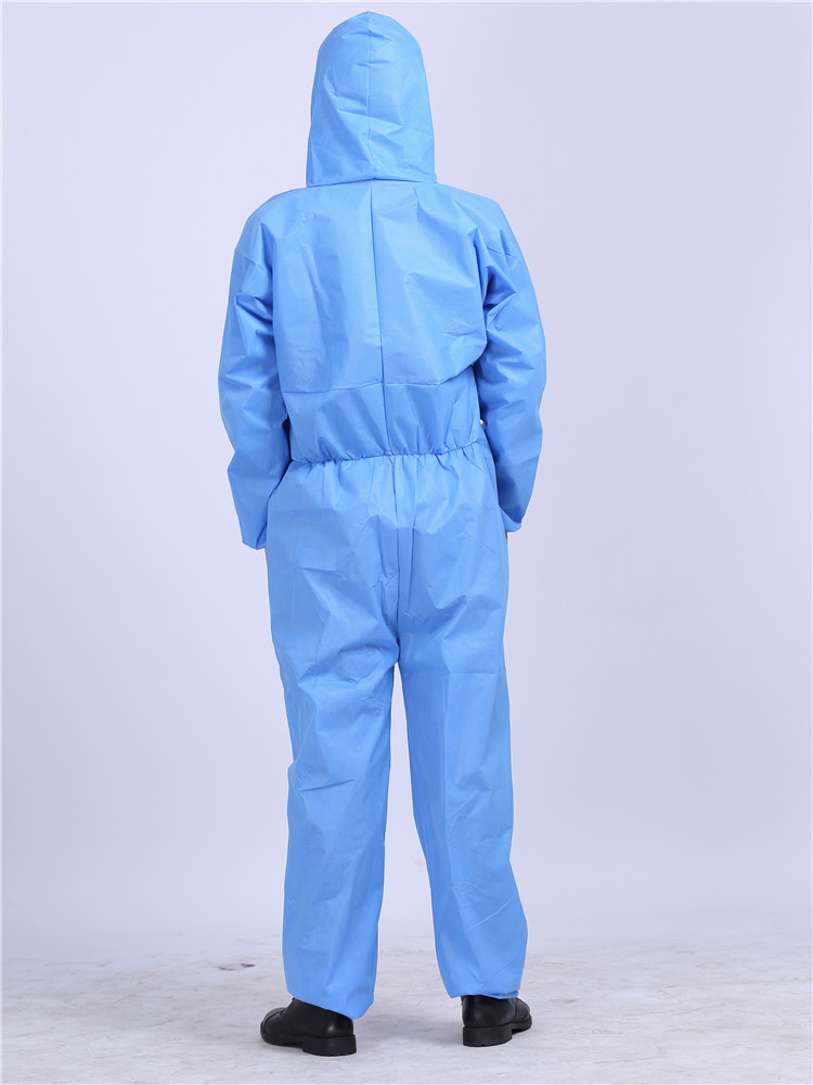 The color is blue /White or can be customed Specifications| Product Name | Hot Sale Safeguard Waterproof Disposable Breathable SMS Coverall With Hood |