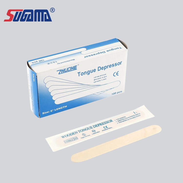Specifications China factory sterile adult / child wooden tongue depressor1)Material: birch wood2)Size:15 x18x1.6mmItem Tongue depressorMaterial Birch wood Size 150x18x1.6mm 140X14X1.6mm(for child) Packing 100pcs/box, 50boxes/carton FeaturesSmooth surface ,disposable ;Odorless, Taste-free,sterileH......